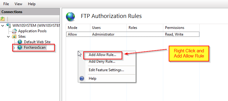 Click FTP Authentication Rule …