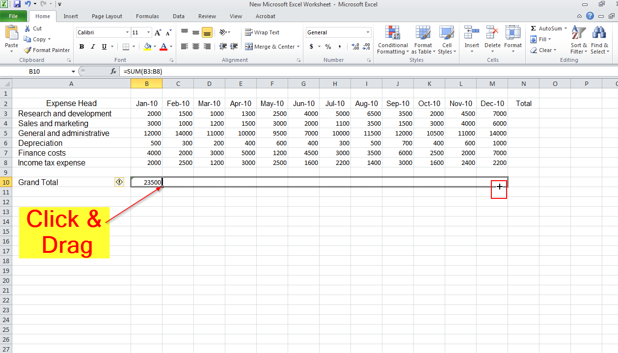 In expense sheet, we have to calculate that how much expense we had in the month of Jan-2010.